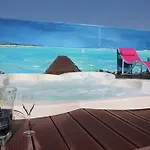 Du koppla av vid en uppvärmd pool eller en spasalong.